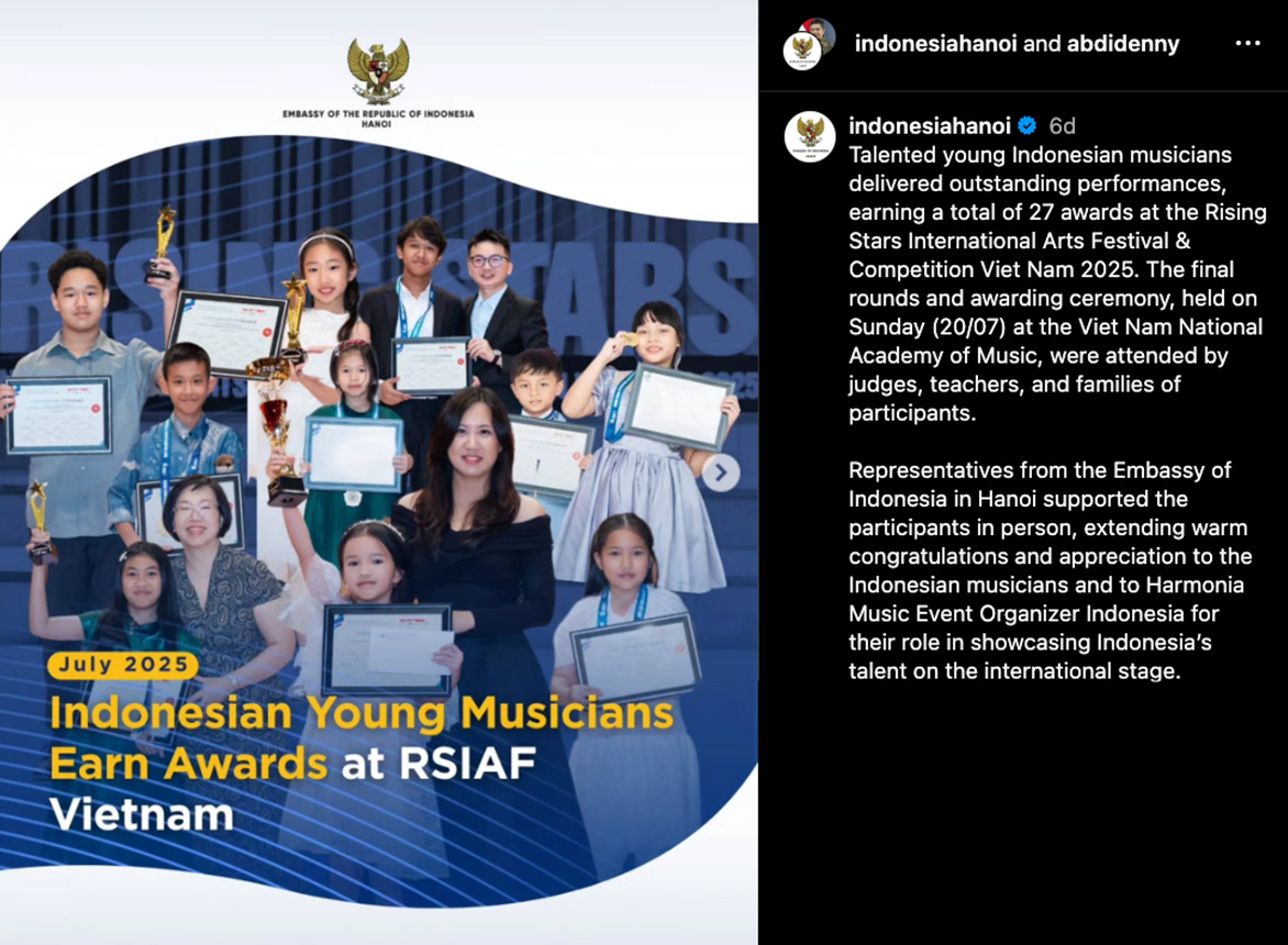 This year, Harmonia Music Event Organizer is proud to announce its new role as the Indonesian representative for the Vietnam Rising Stars International Arts Festival and Competition (RSIAF). In partnership with Mayspace and RSIAF, Harmonia will host the RSIAF 2025 Jakarta Preliminary Round in Indonesia, giving young talents a chance to compete and showcase their artistry on an international stage. This collaboration marks an exciting milestone, bringing together organizations dedicated to fostering musical and artistic excellence. This pact also aims to discover exceptional talent among piano students, spotlighting those with remarkable technical skills, composure, and performance artistry. RSIAF 2025 - Jakarta Preliminary Round will offer both online and onsite competition options, ensuring that pianists residing outside Jakarta have equal opportunities to showcase their talents. Finalists from both the online and onsite Jakarta Preliminary Round will also have the chance to proceed to the RSIAF 2025 final round live in Vietnam, gaining even greater exposure and opportunities. Through this event, Harmonia and RSIAF are committed to nurturing and celebrating the next generation of musical talent.